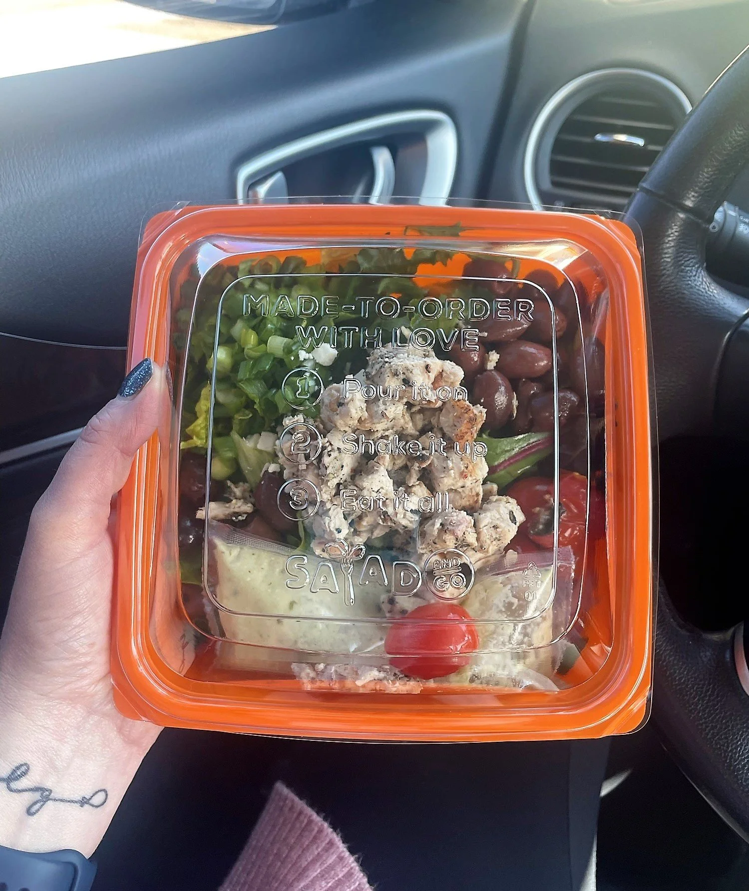 There's like a jalapeno ranch one that I probably should have gotten, but I'm real excited about my Greek salad choice. I feel like that's always a solid go-to option. So go, go, go to the salad and go and hit the drive-through because that's the only option is a drive-through, and you can mobile order from their website app on your phone at yes healthy 2023.